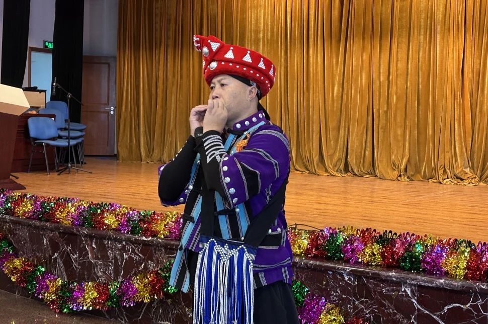 来自云南佤族的青年演员陈志荣带来民族特色节目吹葫芦丝及吹树叶。用一片随手摘下的绿叶演奏出动人的旋律,化腐朽为神奇的演出赢得了现场雷鸣般的掌声。