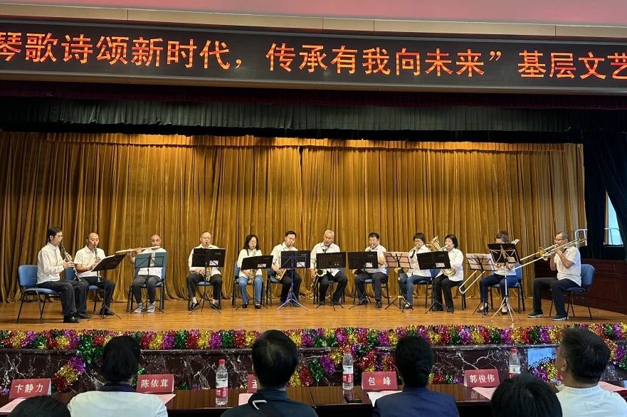 在社区管乐队演奏的《友谊地久天长》声中,“琴歌诗颂新时代,传承有我向未来”文艺演出落下帷幕。