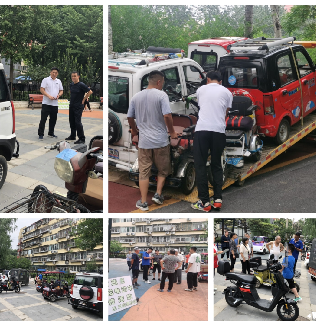 据了解,为了加快推进对违规三四轮电动车的回收处置,我区联合北京市华京源再生资源回收有限公司、北京车兄弟科技有限公司等回收企业开展“违规电动三四轮车回收处置”进社区活动,通过线上线下相结合的形式,进行现场价格评估、回收清运的同时,教授居民线上回收流程。