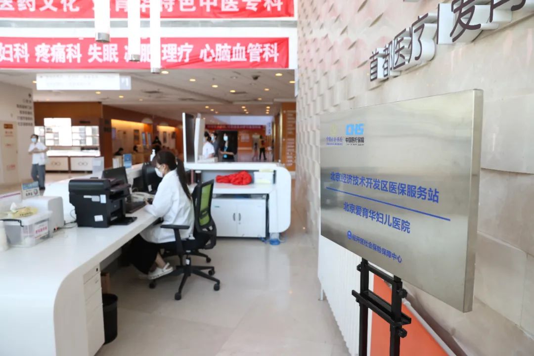 “医保服务站”位于北京爱育华妇儿医院门诊一楼服务台右侧,服务台有2名专业人员和6名辅助服务人员,将为来院就诊的医保患者提供更便捷的医保服务。