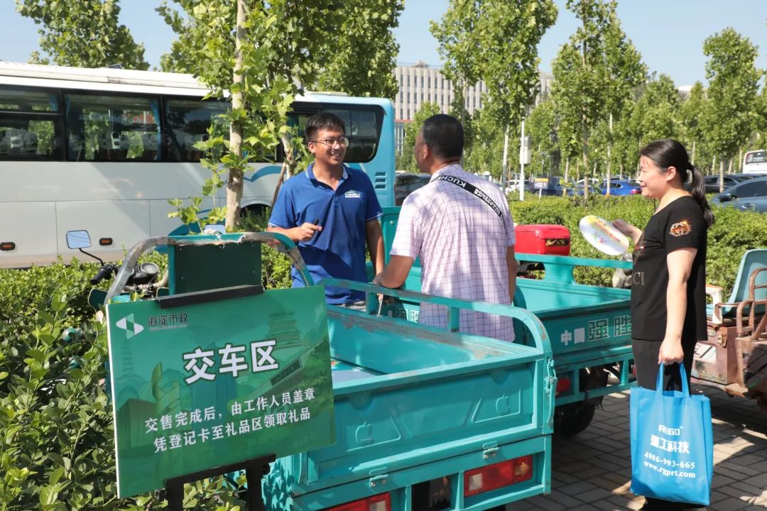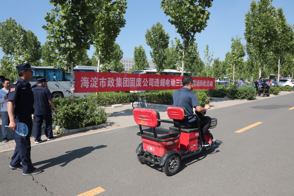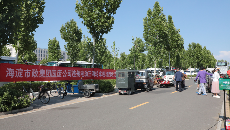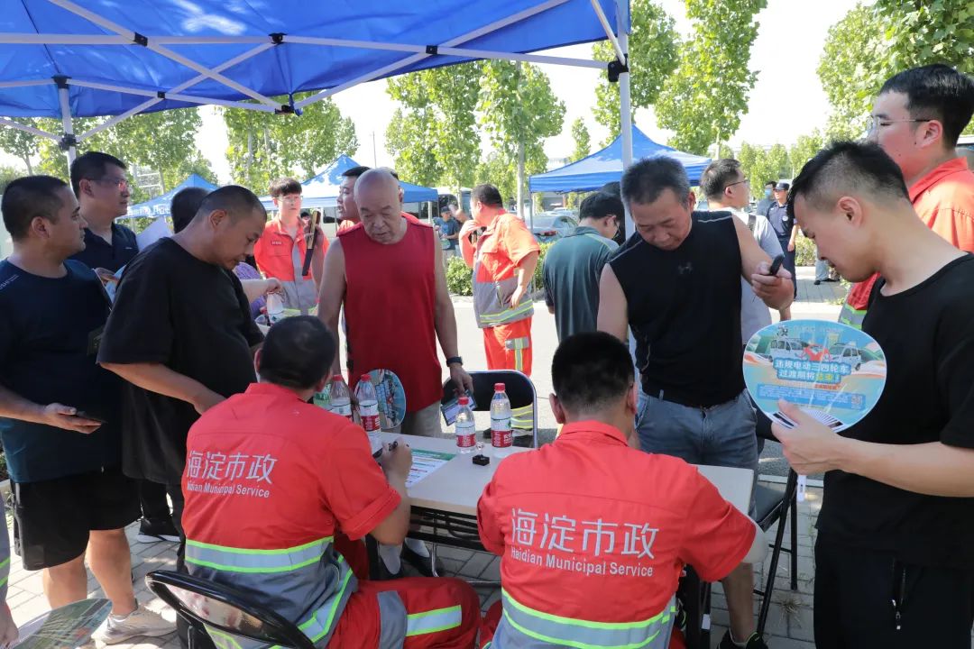 现场设置咨询、等候、审核、评估、交车、礼品六大区域。自居民驾驶电动三四轮车驶入现场起,全程有工作人员指引、陪同。同时,上地街道组织工作人员向居民宣传违规电动三四轮车淘汰政策及回收途径;市政集团固废公司、车兄弟平台工作人员解答回收平台操作相关问题,对淘汰意愿明确的车主,现场评估,线上完成交易备案后,当场向车主支付车辆残值款,进行车辆拖运。