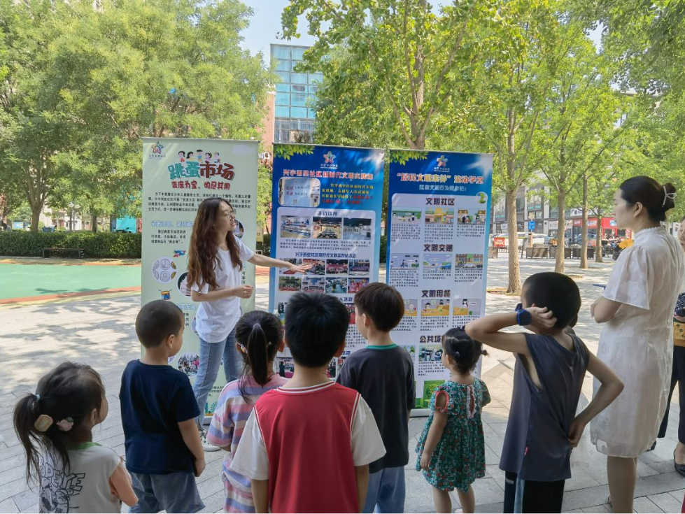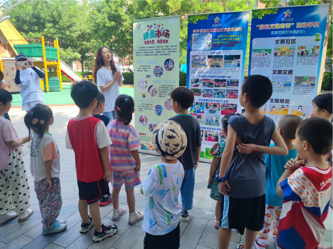 活动现场,“小老板”和“顾客”的欢笑声、叫卖声以及讨价声此起彼伏,流动学堂传递着阵阵文明之声,交汇成一曲欢乐祥和的社区共融曲。