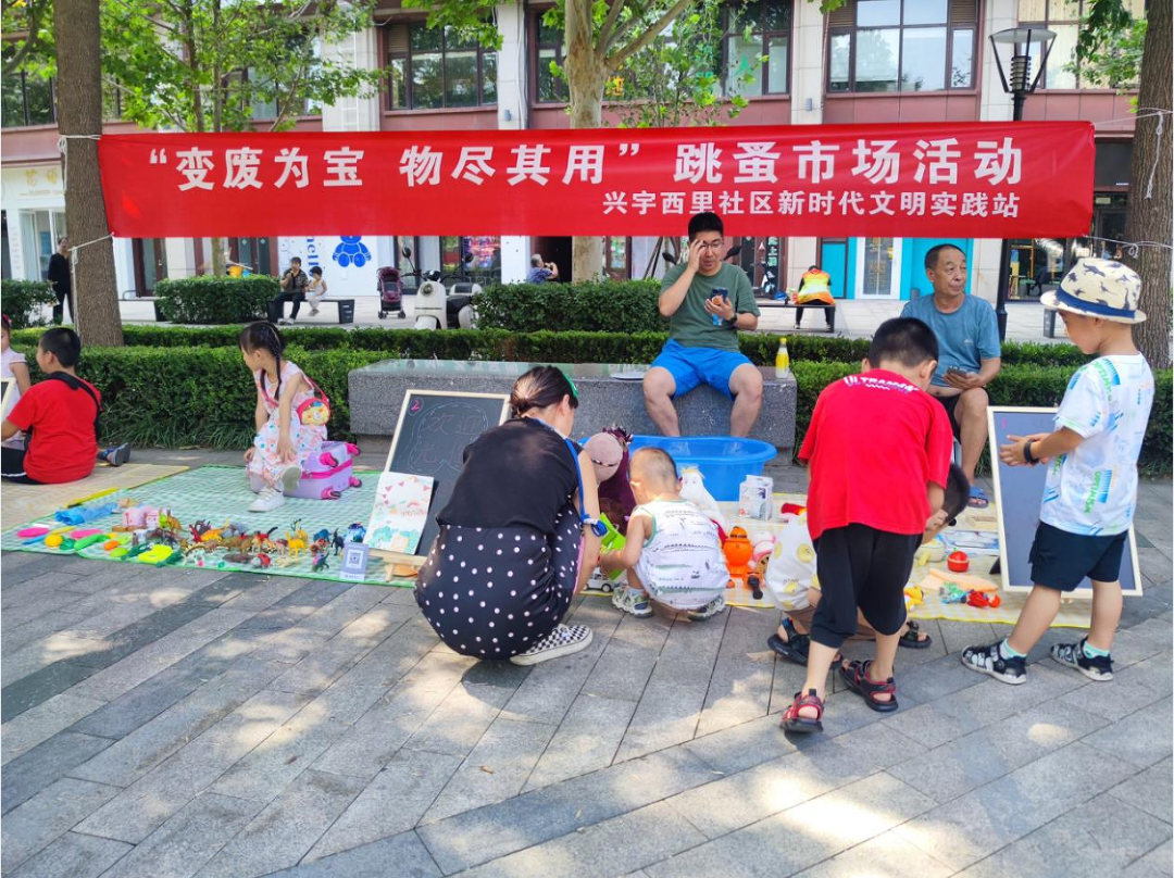 兴宇西里社区,一场“变废为宝 物尽其用”的跳蚤市场火热开场,以环保实践为主题,让闲置物品不再闲置,让旧物重获“新生”,共15组家庭参与本次活动。社区工作人员还将“居民文明素养流动学堂”开到市场旁,“借机”宣传新时代文明实践活动及文明行为。
