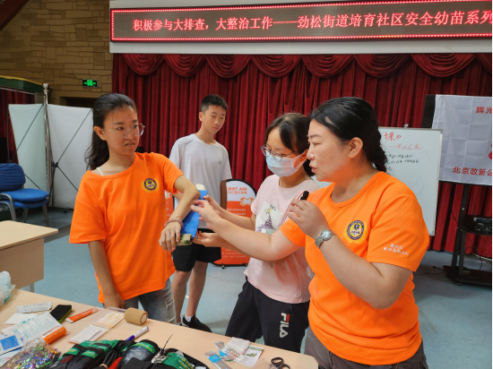 8月27日,由劲松街道办事处主办、北京政新公益文化传播中心承办的安全教育进社区活动——“小小安全官”的青少年创伤体验课在首城社区举办,此项活动是为青少年提供更多的实践机会,学习伤情处置和户外救助技能,掌握自救能力及救人的基础能力。