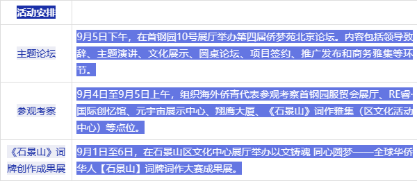 9月5日,在2023年中国(北京)国际服务贸易交易会举办期间,2023侨梦苑北京论坛将在首钢园10号展厅举办。