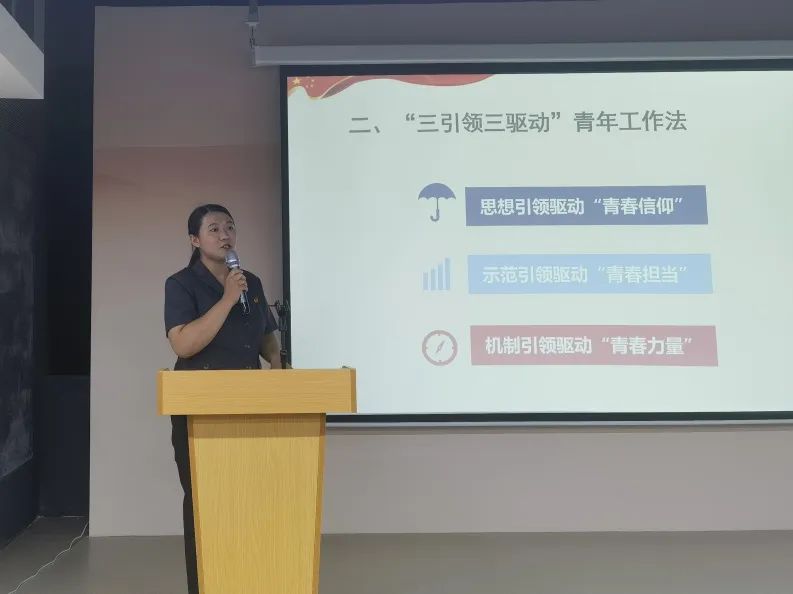 “我们将青年理论学习小组命名为‘响声’,意为发青年之声、聚青年之力,传播青年正能量、唱响青春主旋律。同时,在工作中逐步探索形成了‘三引领三驱动’青年工作法。”北京市高级人民法院新闻办党支部青年理论学习小组组长郭海丽向大家介绍道。