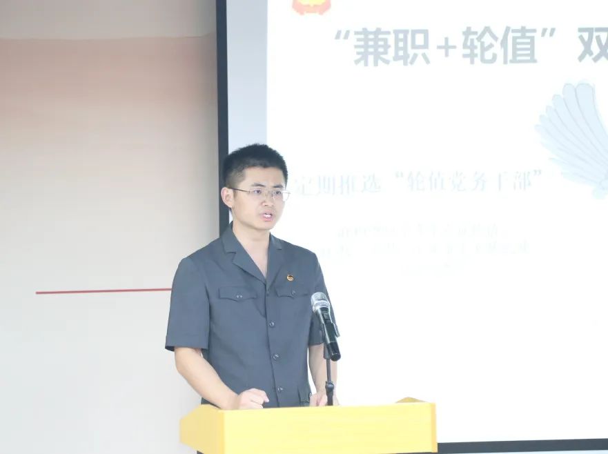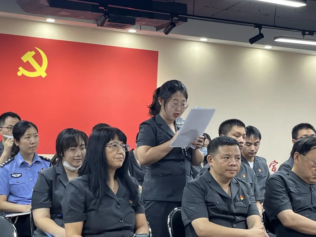 “我们支部给办公室干部确定了‘四能标准’,也就是‘提笔能写、开口能讲、问策能对、遇事能办’。我想,双翼型党务干部配置模式为培养‘四能’型干警提供了舞台,也是青年干警成长成才的平台。”办公室党支部柯弈男还介绍了部门青年干警陶坤同志三次下沉社区支援抗疫,深化“风采影像志”的成长故事。