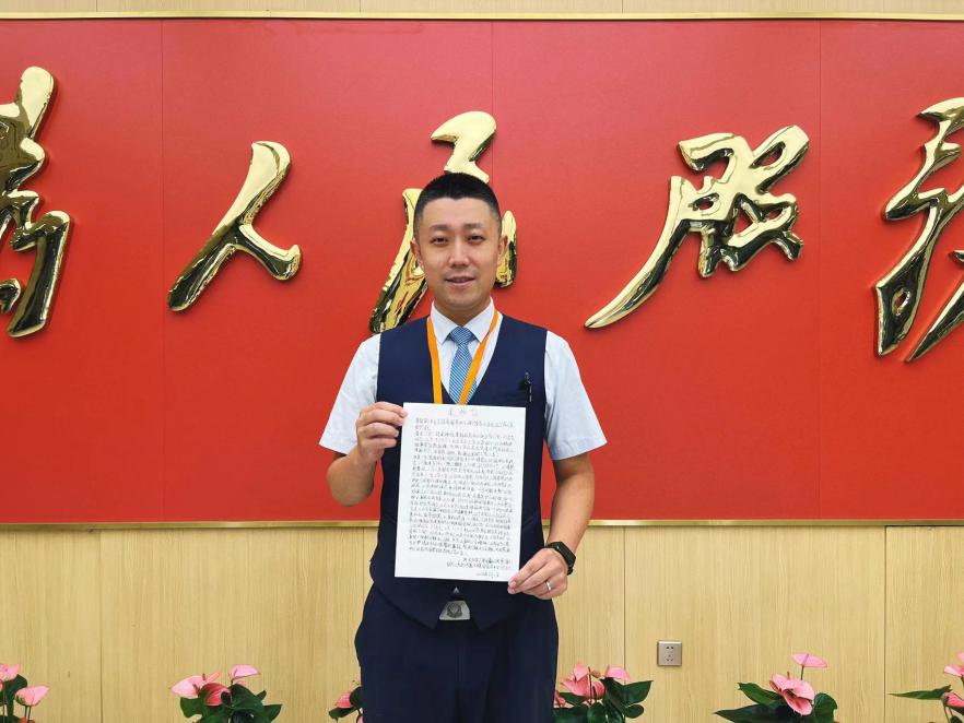 “请问您认识一位姓刘的老师吗?我专门写了封表扬信,表达我的感谢。”据悉,前段时间刘女士来厅办理分公司营业执照经营范围变更和医疗器械经营许可证新办业务,从窗口提交后才得知之前填写的申请表有误需要修改,在窗口人员的指引下来到E服务厅,遇到了正在热心指导业务的刘君尧。刘君尧看出女士的为难,主动上前,询问她的需求,一步步的指导她从网上操作变更经营范围。“我看您业务特别精通,您能再帮我看看如何修改医疗器械的申请表吗?我现在登不上去了。”刘女士说道。对此,刘君尧落实首问负责,耐心陪同刘女士一遍遍找回密码,帮助其重新填写申报材料,并从资料的填写、材料的准备一次性告知群众,帮助其打印好所需材料,指引到原来的窗口进行提交,整个过程持续了三个多小时。
