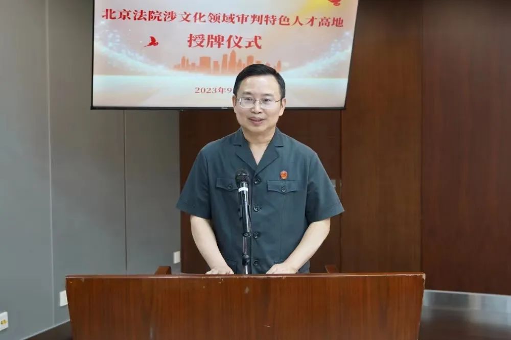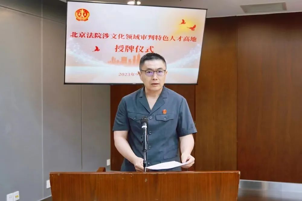 北京高院党组成员、政治部主任李旭辉向东城法院授牌。北京高院政治部教培处处长宋卓基宣读了授予东城法院“北京法院涉文化领域审判特色人才高地”称号的决定。