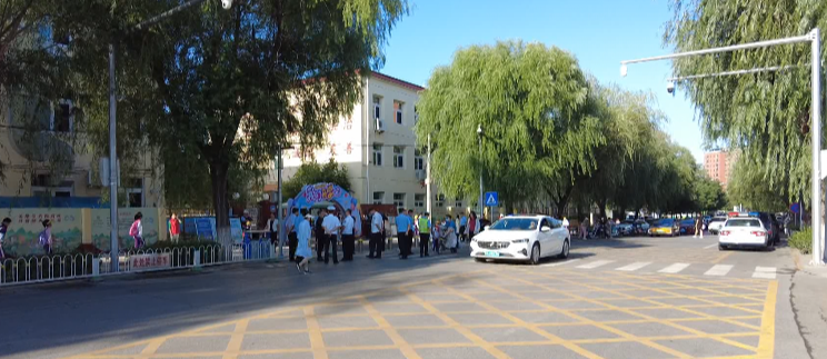 同样,在区第一小学、第三小学门口,执勤警务人员正对学校路口车辆进行引导,减轻学校门口及周边道路的交通压力,避免造成拥堵,同时提醒过往车辆减速慢行。
