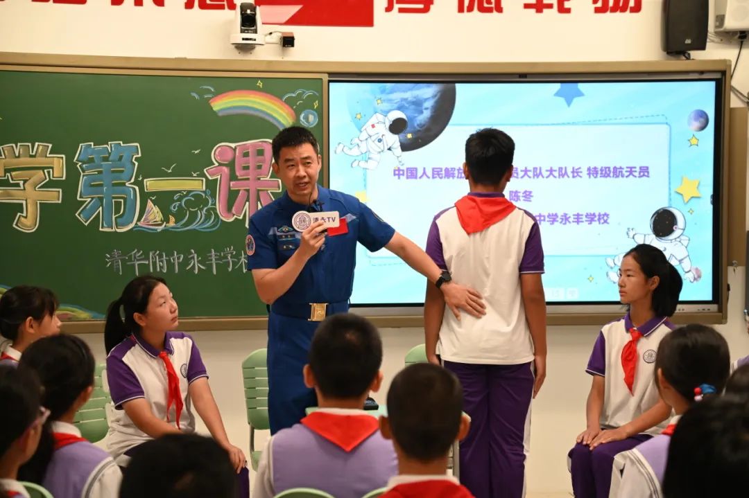 在清华附中永丰学校东校区,中国人民解放军航天员大队大队长、特级航天员陈冬为学生们上了开学第一课。