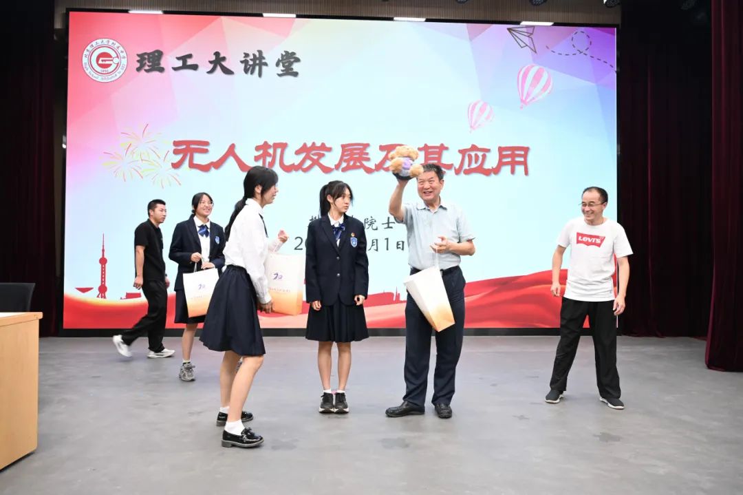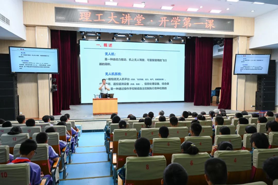 随后,以“无人机发展及其应用”为主题的开学第一课在北京理工大学附属中学礼堂举行。中国工程院樊邦奎院士为同学们讲述了无人机的现状、发展历程及模型展示,并通过现实世界无人机在现代战争及民用各领域的丰富案例的分享,感染着在场每一位同学。