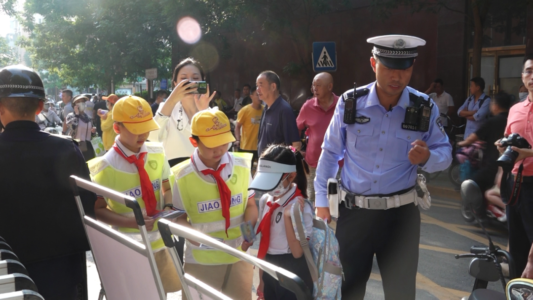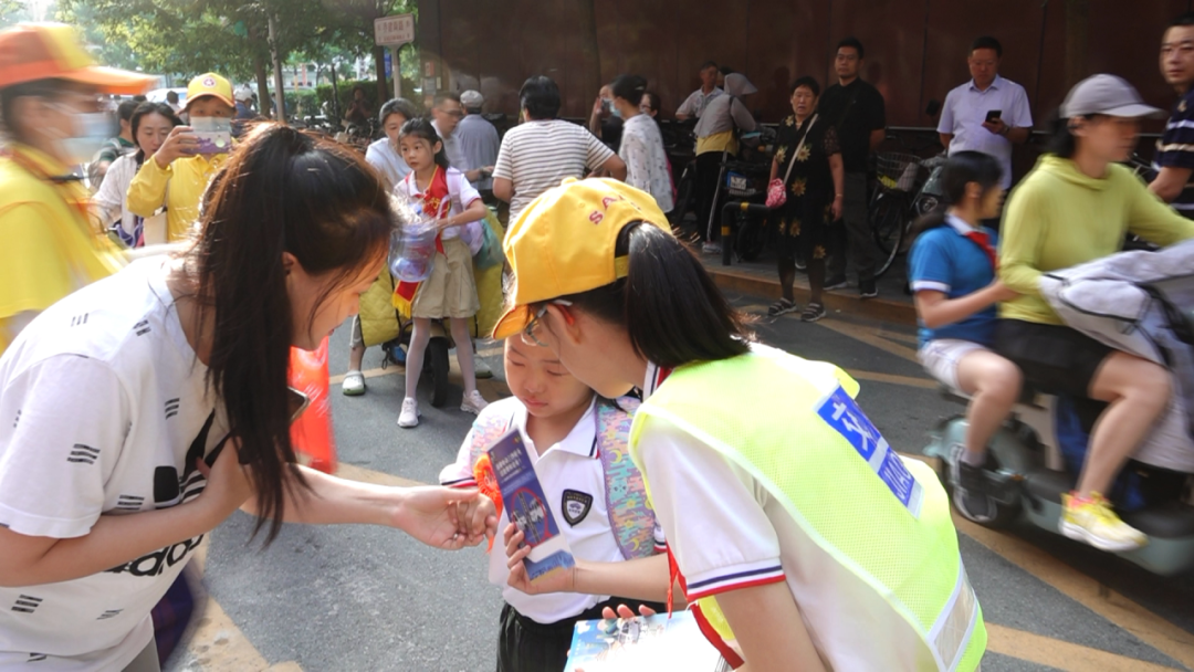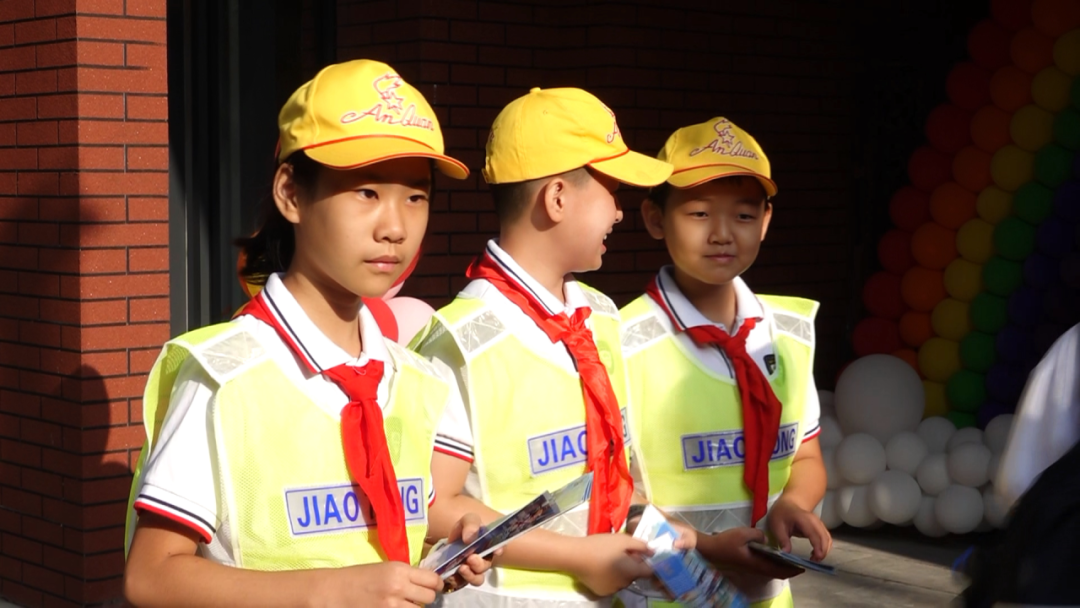 这些“小小交通管理员”表情认真,动作标准规范,组织行人、家长和学生有序出行。面对刚刚入学还有些胆怯,不敢走入校门的一年级新生,这些“小小交通管理员”也会热情地跑过去帮忙,手拉手引导新生入校。