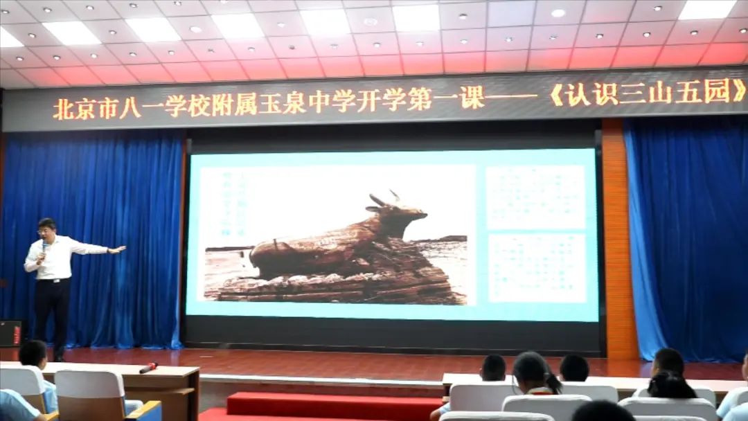 “三山五园”开学第一课同时在北京市八一学校附属玉泉中学、海淀区西苑小学、海淀区教师进修学校附属实验小学三个分会场举行。