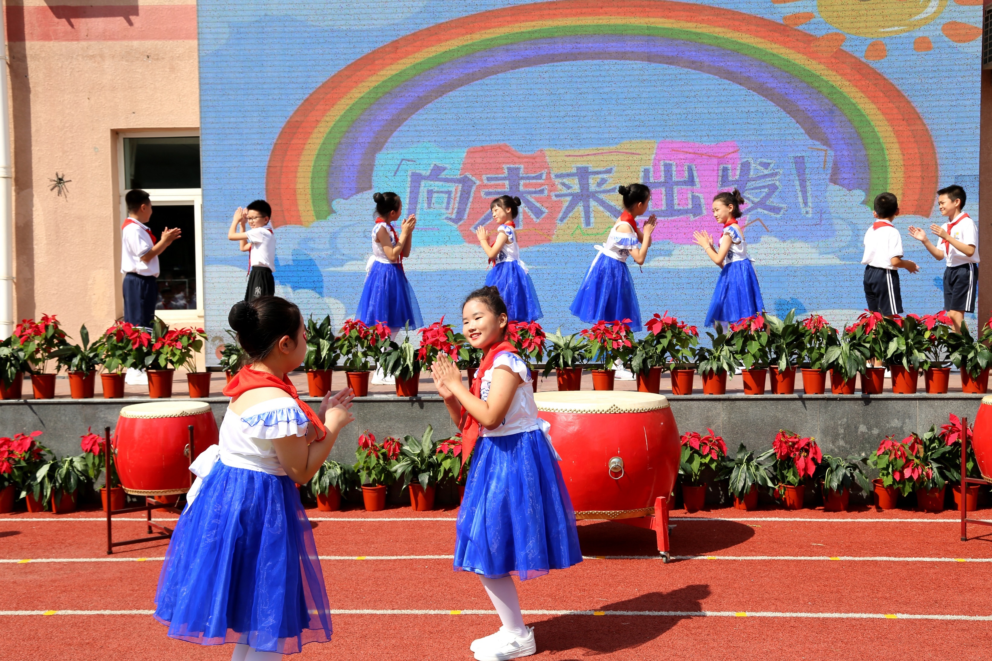 在雄壮的国歌声中,开学典礼的序幕拉开,师生奋进的旋律奏响。 击鼓催征,扬帆启程。三击鼓,以明志,从今起,志存高远,向阳而生。随后,彩虹少年朝气蓬勃的舞姿展现出西罗园五小学子自信阳光的气质。