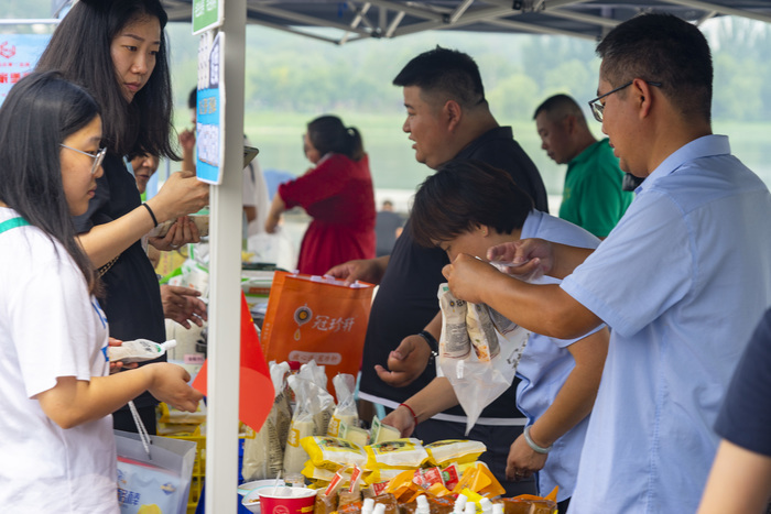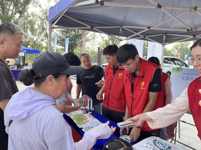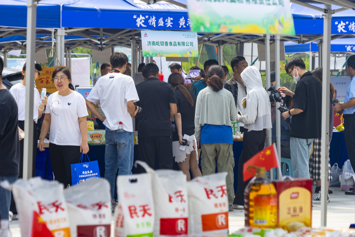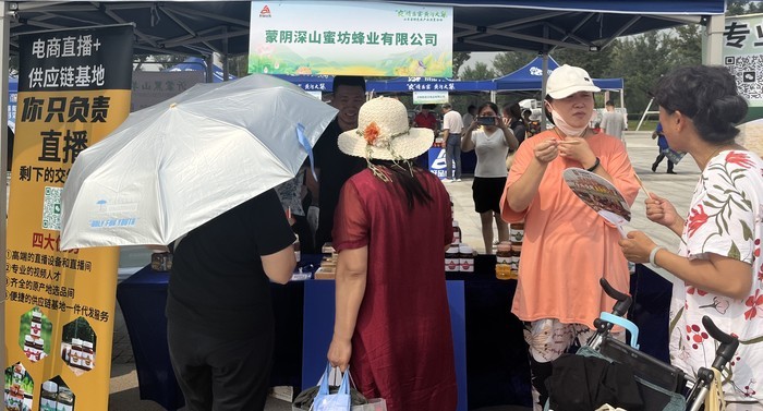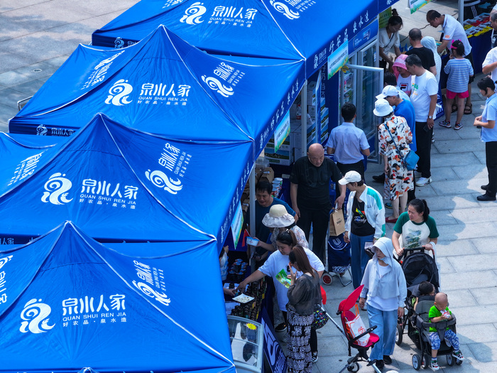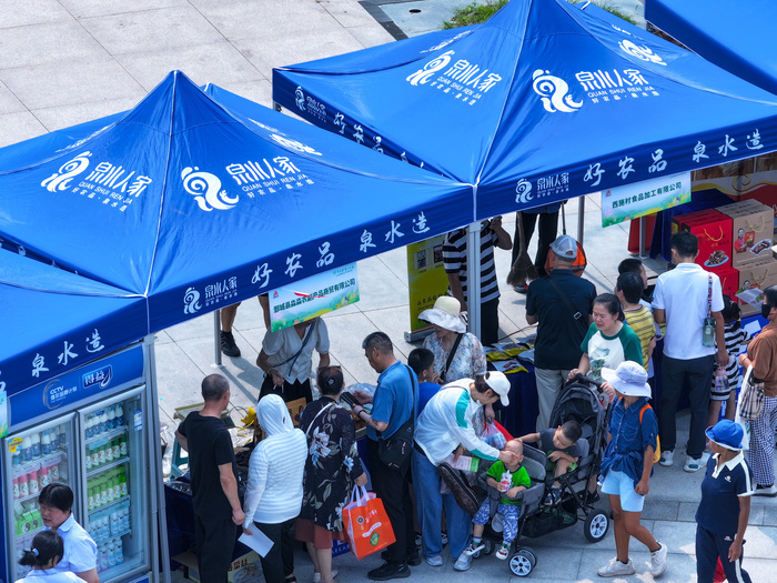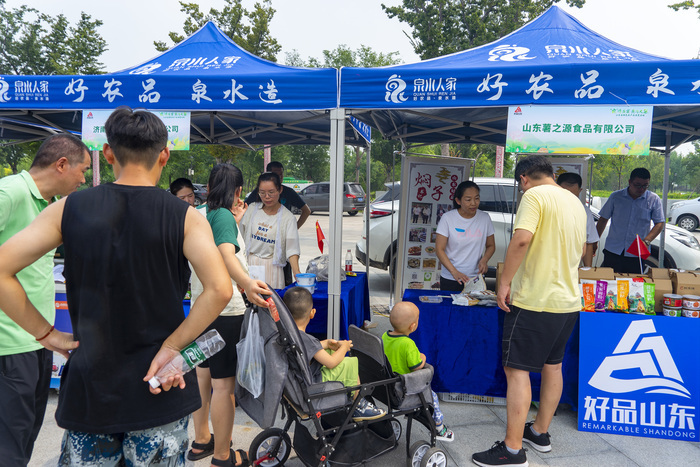 9月2日,“泉水人家”进社区活动联合“‘农’情盛宴 黄河大集”山东省特色农产品消夏活动同步在华山风景区举行。来自全省16地市的66家优质农产品品牌企业参与(含“泉水人家”授权企业近30家)。