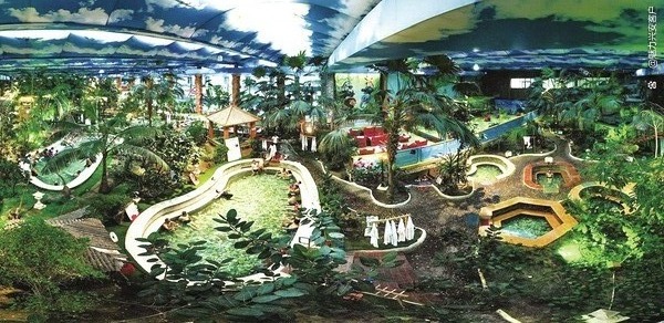 各泉眼间用珍贵热带植物隔断
