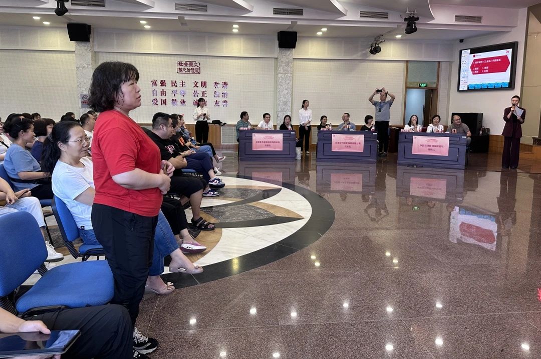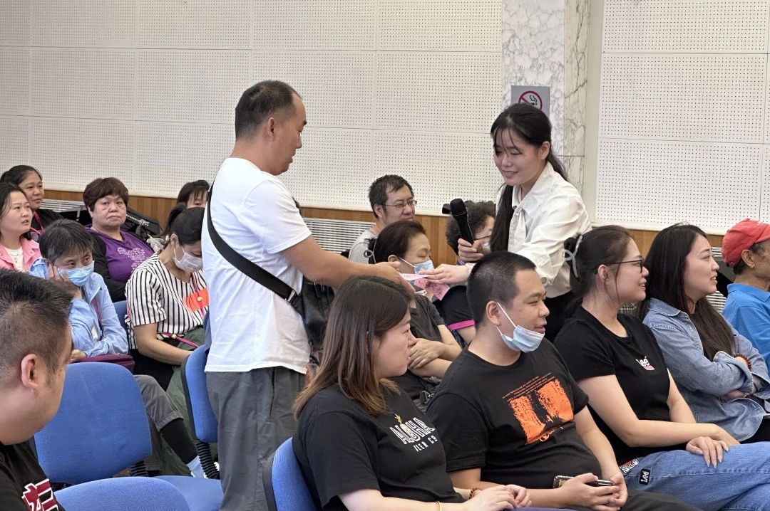 同时,现场还设立了观众抢答环节。哪个选项中全部都是国家法定节假日?哪种情况下企业不能开除员工?抢答题目十分接地气,居民回答正确后还有小礼品赠送,现场不少人积极举手抢答。
