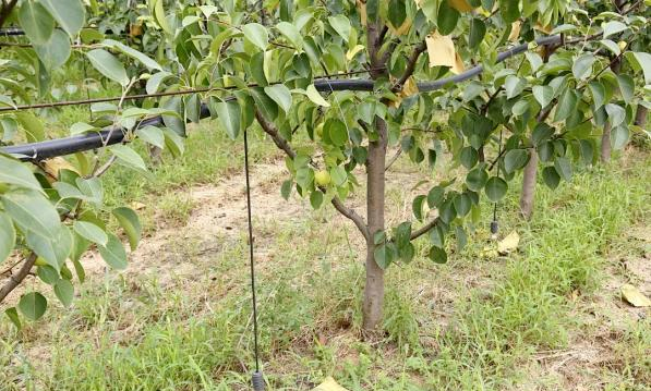 “树中间一根管,让梨果吃上水肥‘营养餐’。梨园虽无人值守,却尽在管理员掌握之中。”果园负责人介绍说。 根据采集的气象墒情监测站数据,以及佛见喜梨周期性生长机理,需要浇水或施肥时,管理人员按下灌溉控制终端发出指令,通过水肥一体化全自动施肥机,使用配套的高标准水管路滴灌,实现灌溉、施肥自动控制智能一体化,定点、定量,省时、省力,既能帮助果园水肥节本增效,又能改善梨的色泽和成熟度等,从而培育优质果。