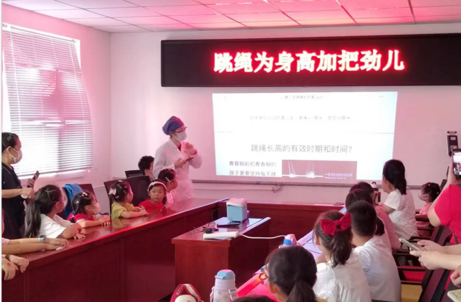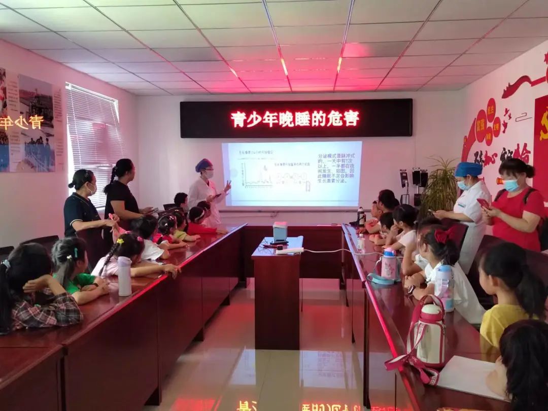 活动中,薛娇和赵洪艺两位医生,多维度讲解青少年身心健康的重要性,重点用图文并茂的形式强调了晚睡对青少年的危害:会影响身高的增长,长期熬夜会出现脾气暴躁、抑郁等症状;并以互动的形式向学生们传授如何克服自己晚睡的不良习惯和如何增长身高的小秘诀等。同学们认真聆听宣讲积极参与互动,现场气氛一片热烈。