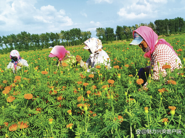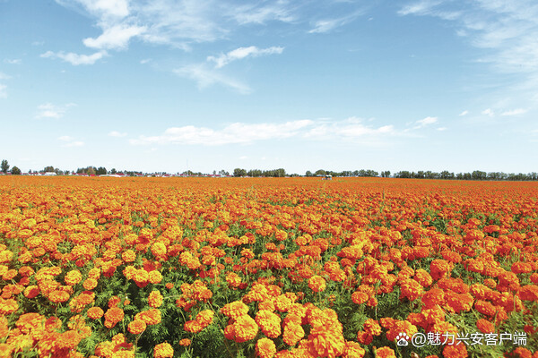 眼下,扎赉特旗好力保镇五道河子村120亩万寿菊进入盛花采摘期。