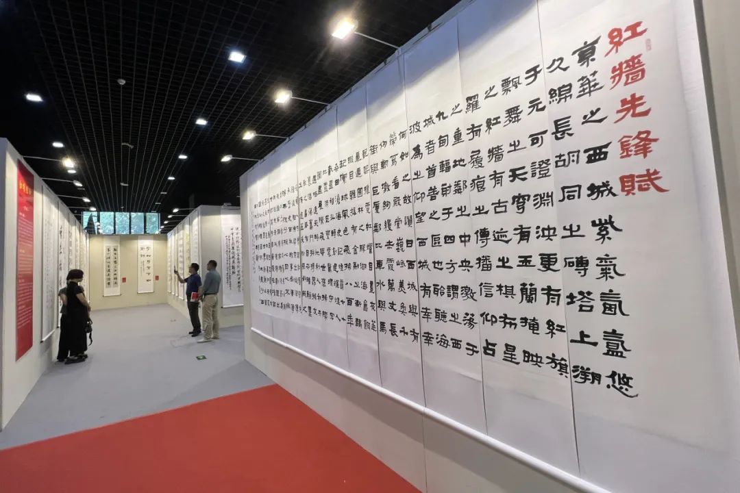 2023年是全面学习贯彻党的二十大精神的开局之年,也是深入开展习近平新时代中国特色社会主义思想主题教育之年。此次书法展紧紧围绕“举旗帜、聚民心、育新人、兴文化、展形象”的使命任务,深入贯彻落实党的二十大精神,以“红墙先锋”为主题,共展出来自全国各地书法家200余件优秀书法作品。参展作品主题鲜明、立意高远,内涵丰富、异彩纷呈,具有浓郁的时代气息和较高的艺术价值,不仅讴歌了党团结带领全国各族人民取得的伟大成就;更生动呈现出西城区在新时代新赶考之路上,以文艺发展新成效展现“红墙先锋”新作为、为谱写更加生动的文化传承发展华章而不懈奋斗的精气神。
