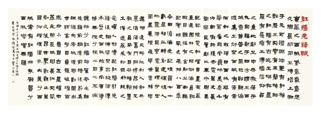 据了解,自今年3月起,区文联、区书协就开始面向全国公开征集以“红墙先锋”为主题的书法作品,共收到来自全国各地众多书法家和书法爱好者作品1000余幅,经过三轮严格评审,评选出200余件优秀作品进行参展。“所有入展作品紧扣主题内容,不仅讴歌了党团结带领全国各族人民取得的伟大成就,也为党的二十大精神在书法艺术界落地生根贡献力量。”区文联相关负责人表示,此次展览不仅是书法艺术家们对党的二十大精神“学深悟透践行”的具体表现,更是西城区弘扬中华优秀传统文化,实现文化强区建设的鼎力之作。