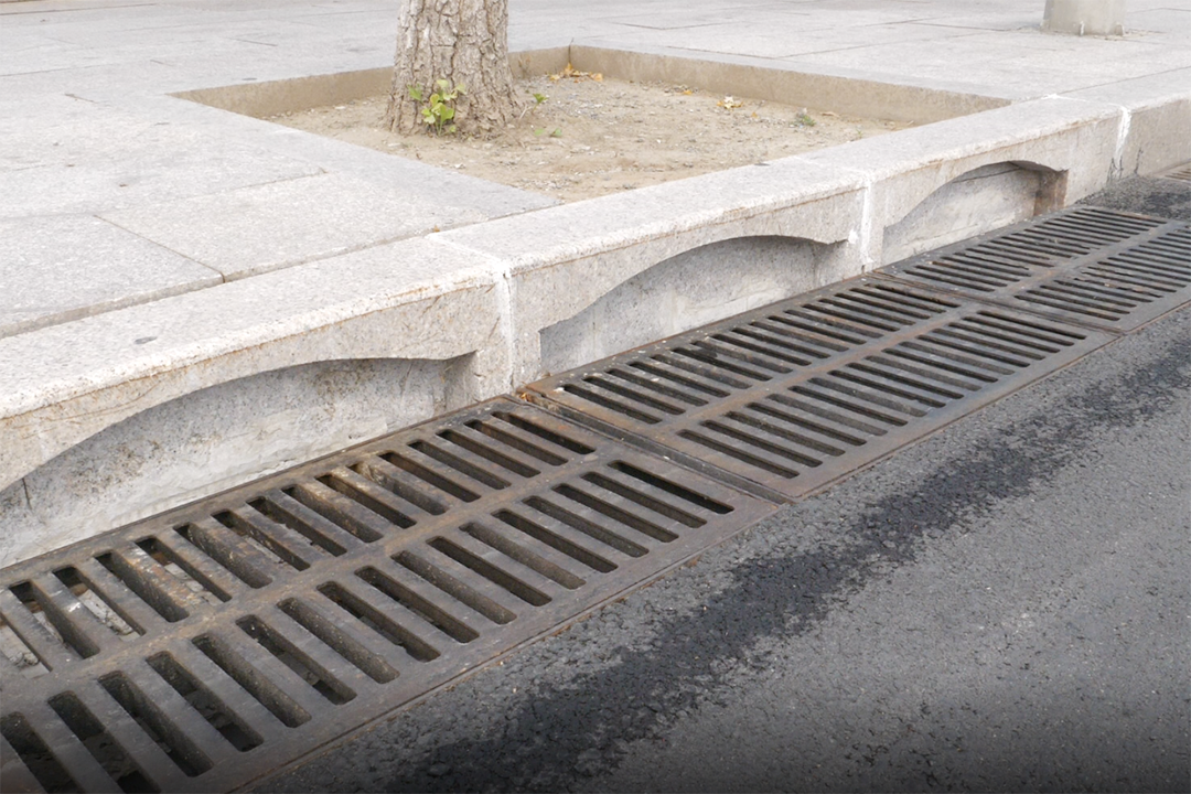 记者来到建北三社区北门前的站前东街非机动车道上看到,路边新建的一体化截水沟从社区北门一直延伸到交叉路口。透过雨水箅子,记者看到一体化截水沟既连接着南侧人行步道下新建的雨水管道,也与机动车道上的雨水口相连,这样一来,雨水口和截水沟收集的雨水向南排入新建的雨水管道,向东排入光明南街现状雨水管道,提升了道路排水能力。机动车道雨水口也改造成了双箅及多箅雨水口。