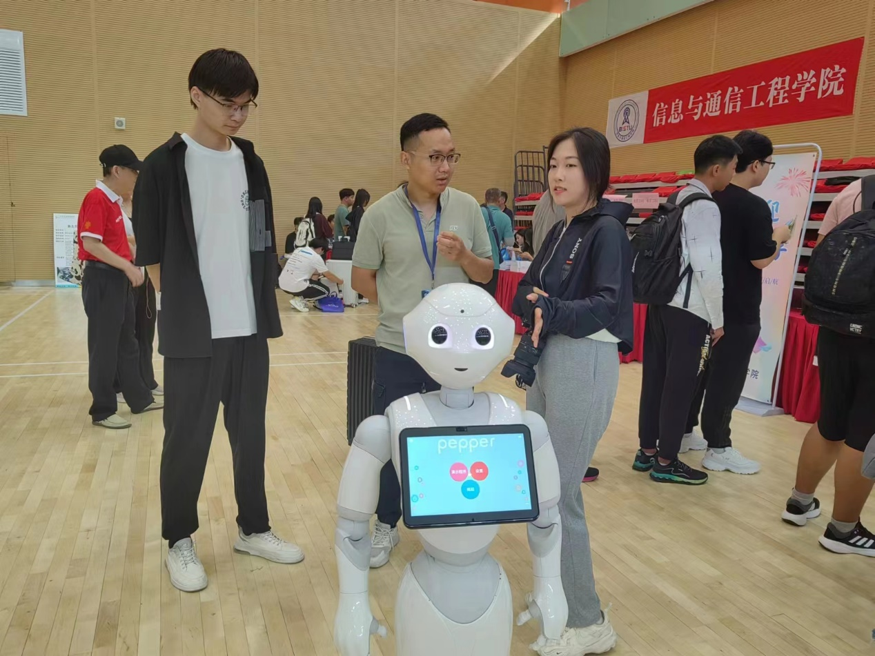 报到当日,各个单位及学院的迎新方式都独具匠心,用自己的方式,为新生们记录这一特别的时刻。党委学工部在各校区标志性建筑设置新生拍照打卡点,并安排志愿者同学示范引领、帮助拍摄。报到当天,新生同学纷纷来到打卡点,留下与信息科大相遇之处的第一张合照。计算机学院推出了自行研发设计的Pepper机器人。迎新现场憨态可掬的机器人吸引了众多家长学生观看。它向各位前来观看的家长学生智能语音输出“各位2023级萌新们大家好,欢迎来到计算机学院大家庭,让我们一起用智慧的程序写出美好的未来吧”,这个智能“显眼包”成为大家最喜欢的打卡拍照打卡地!自动化学院为新生制作宿舍全家福,让新生感受到学院大家庭的温暖,同时为新生准备了“三行情诗”展板,让新生写下对学校、学院、班主任、辅导员、班助等最想说的话。
