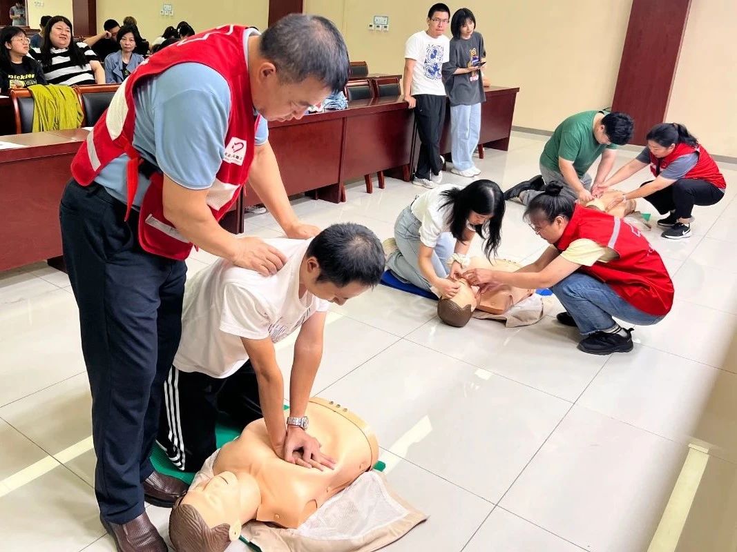 培训现场,赵建军老师对急救常识、现场心肺复苏、创伤救护、意外伤害等相关救护知识进行科普,逐一讲解了胸外按压、人工呼吸、海姆立克急救法等施救技巧。