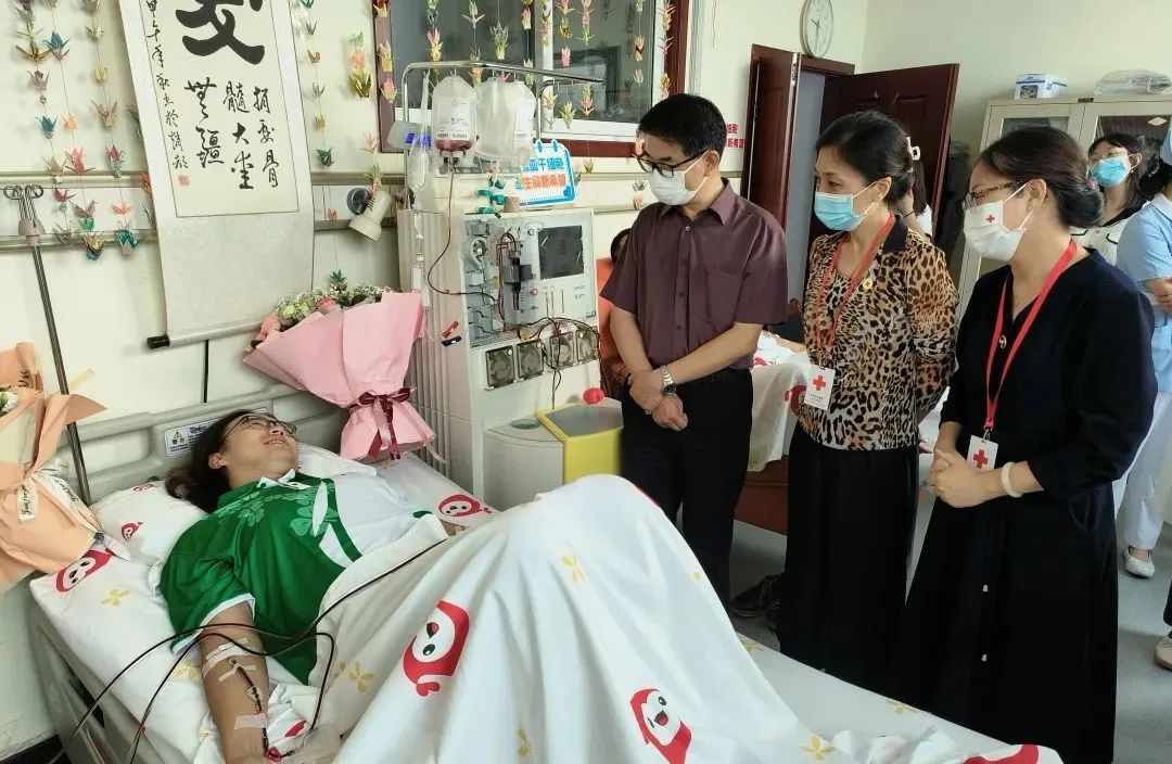 9月6日上午,西城区政府副区长、区红十字会会长宋玫探望了正在某医院捐献病房进行造血干细胞采集的小鹏,为他颁发了捐献证书和感谢状。西城区红十字会“牵手希望”志愿者们也为小鹏送上鲜花,对他的大爱善举表达敬意。