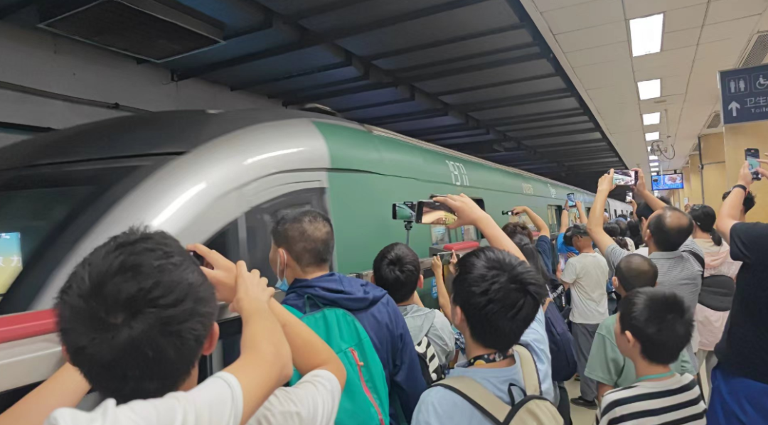 此前“时光列车”试运营期间,8月15日,记者来到地铁复兴门站,看到不少市民专程来打卡“时光列车”。