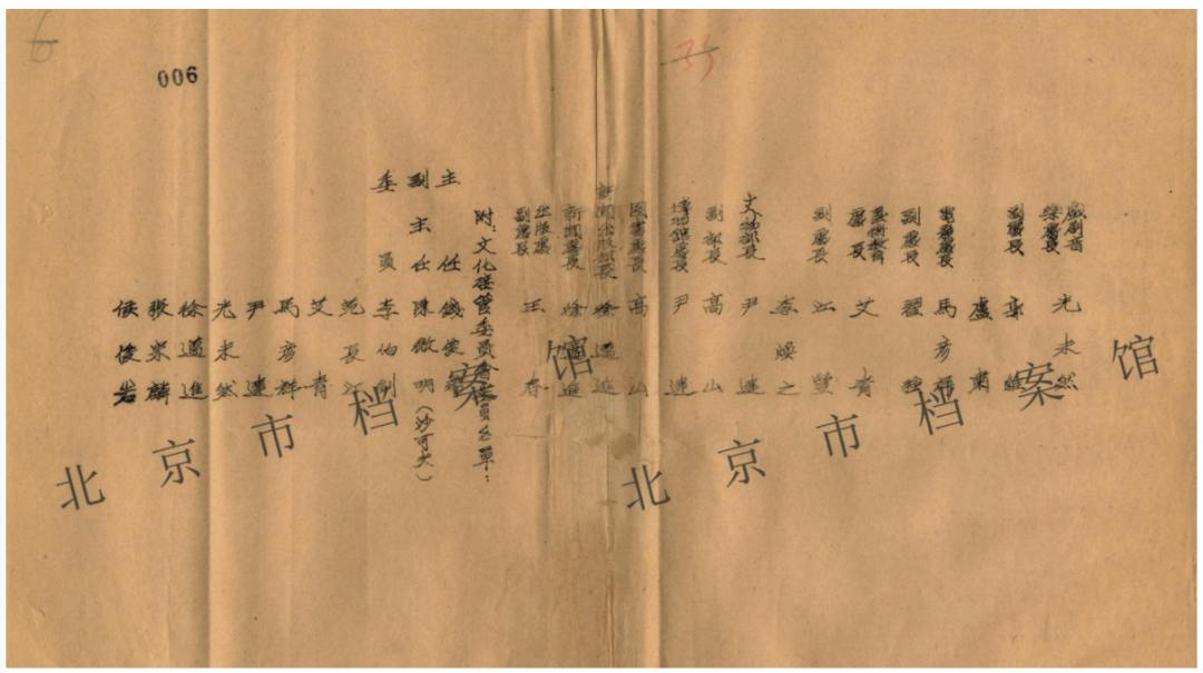 ▲图片说明:北平文化接管委员会委员名单(来源:北京市档案馆)。