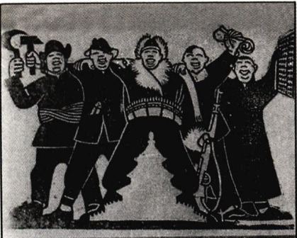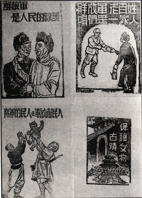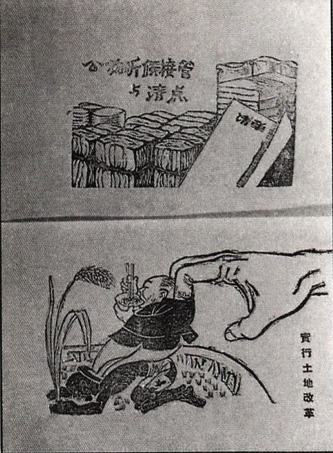 ▲图片说明:北平艺术专科学校中共地下党支部组织进步师生创作的向群众宣传党的方针政策的漫画。
