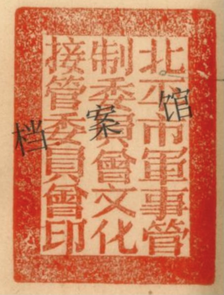 ▲图片说明:北平市军事管制委员会文化接管委员会印(来源:北京市档案馆)。