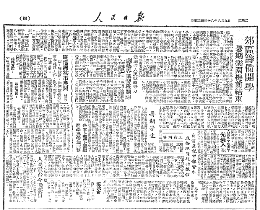 ▲图片说明:1949年8月8日,华北文化工作委员会旧剧处与北平市文艺工作委员会旧剧科共同主办的北平戏曲界讲习班开学,参加者有500多人。讲习班着重对艺人进行思想教育,明确文艺为工农兵服务的方向,破除戏曲界内部的门户之见;讨论旧戏改革问题。图为北平戏曲界讲习班开课的相关报道。