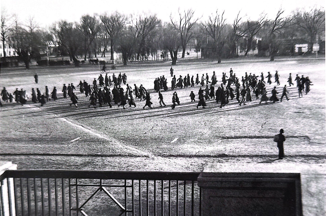 ▲图片说明:左图为北平和平解放后,在北平国民大戏院公演《白毛女》的宣传照;右图为1948年12月15日,清华、燕京两校师生热烈欢迎解放军进城,两校率先得到解放,清华大学学生扭秧歌以示庆祝。
