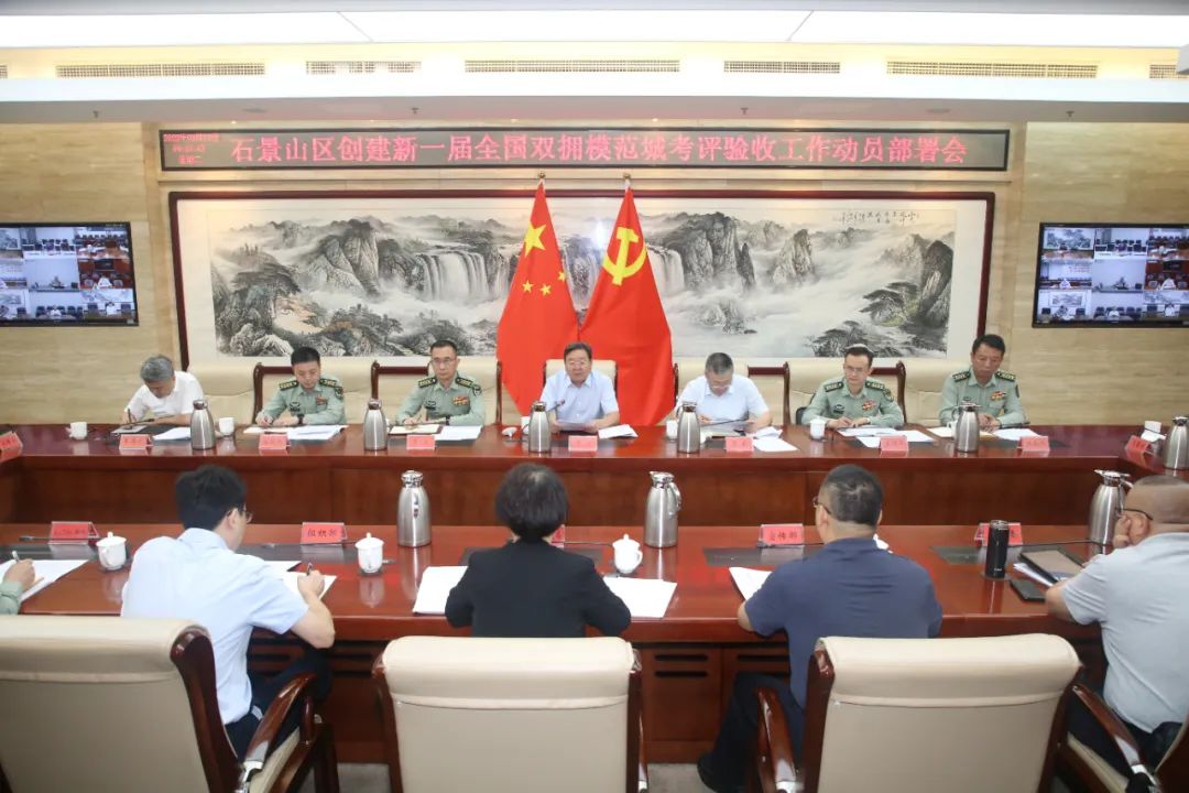 9月12日上午,石景山区召开创建新一届全国双拥模范城考评验收工作动员部署会。中部战区政治工作部办公室大校主任夏冰,陆军政治工作部群工联络局大校局长姜润泽,北京军区善后办政工组大校组长陈晓峰,区委书记常卫,区委副书记、区长李新参加会议。