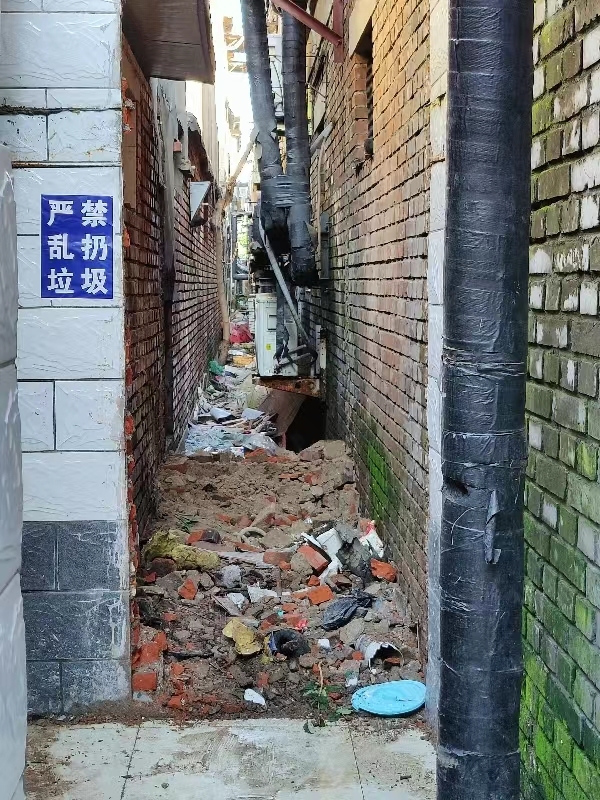 万佳利平房区是万柳西园综合治理的“老大难”,不仅因为这里人口稠密,居民流动性强,产权单位和物业公司常年收不上居民物业费,管理一直很薄弱。最近,一件件关于彻底清理平房区夹道陈年垃圾的诉求飞到了社区。原来,由于部分平房区居民卫生环境意识较差,两排房屋之间0.8米宽,140余米长的狭窄夹道成了倾倒垃圾“隐秘的角落”,加之3年前旱厕改造,厕所储物间将夹道封死,形成了一个人员无法进入清理的死角,陈年垃圾越堆越多,散发恶臭的同时也导致暴雨积水无法正常排出,居民家的墙根也因水沤导致屋内潮湿发霉,正常生活受到严重影响。