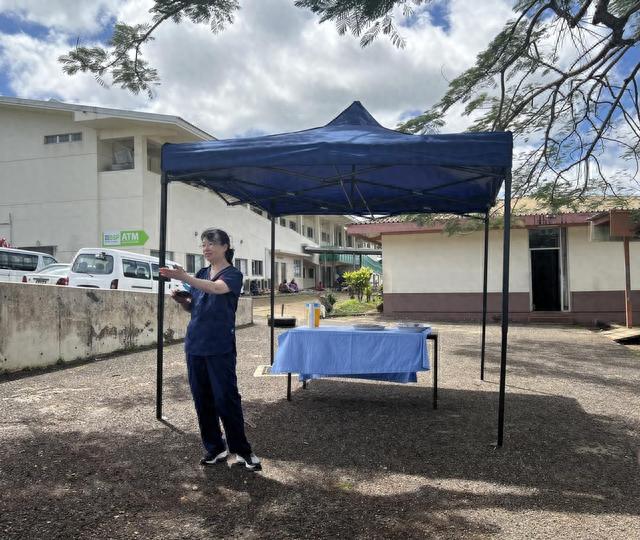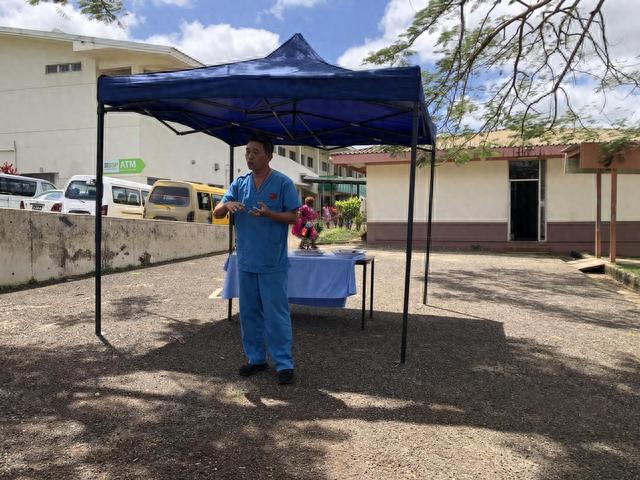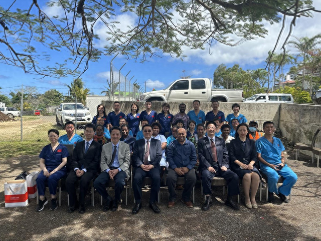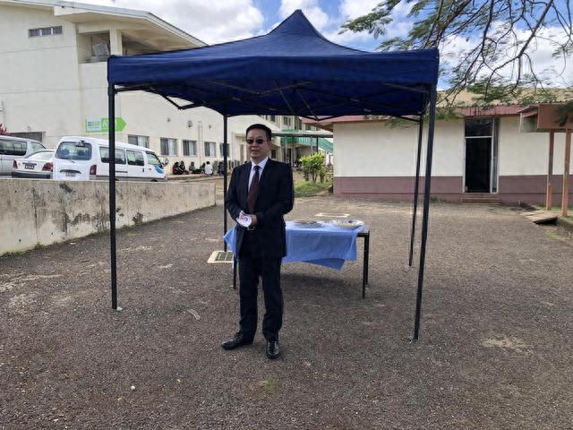 9月7日,第1、2批援瓦努阿图中国医疗队轮换交接仪式在维拉中心医院举行,北京市卫生健康委二级巡视员郑晋普带领的监督交接工作组、第1和第2批中国医疗队全体队员、维拉中心医院院长Dr.Vincent Atua、各科室主任及部分员工出席轮换仪式。