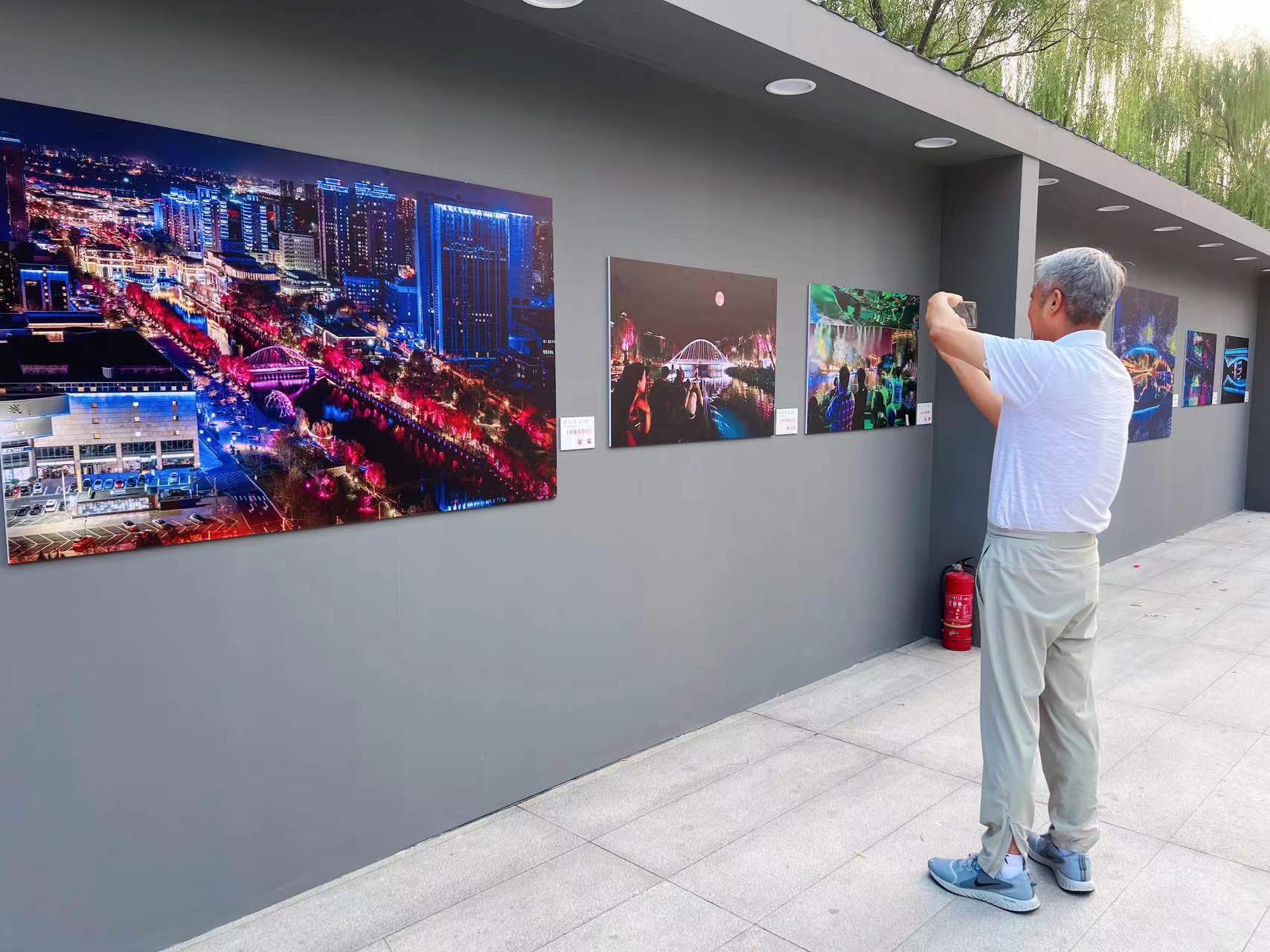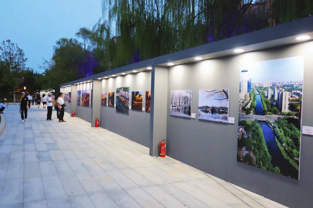 摄影展区共展出49幅摄影作品,是由朝阳区文联先后组织百余名摄影家对亮马河进行现场采风,从征集的2400余件摄影作品中精心甄选而来,以镜头捕捉亮马河畔四季流转,以光影展现亮马河畔夜色斑斓,记录亮马河畔华彩蝶变。