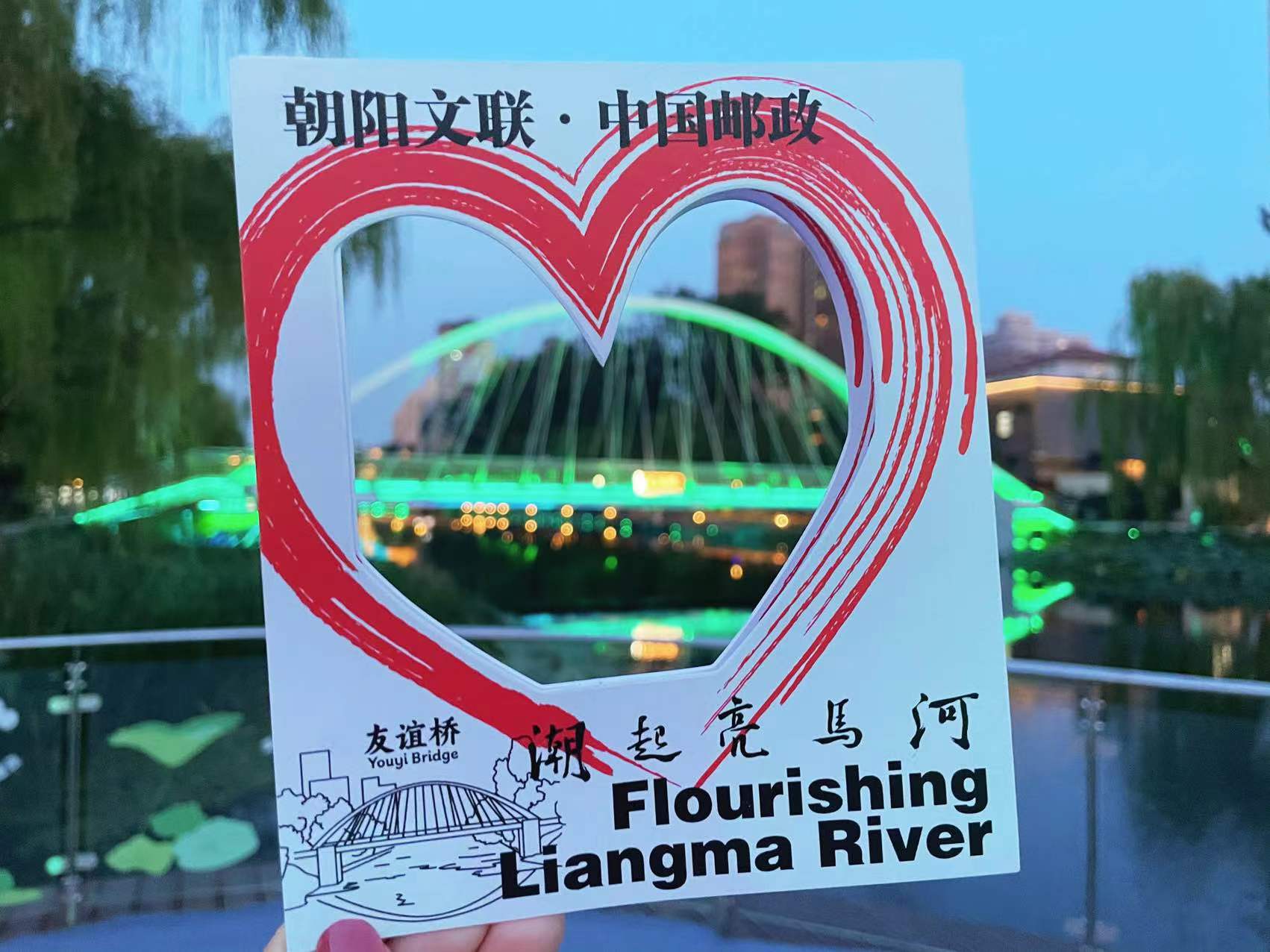 民间文艺展区展出了《亮马河24桥剪纸》作品,展览期间,朝阳区文联还与中国邮政集团北京市朝阳区分公司合作设立主题邮局打卡点,游客们不仅可以近距离欣赏《亮马河24桥》剪纸作品,还可前往亮马河24桥周边的6个打卡点收集“24桥邮戳”,通过社交媒体进行拍照打卡还可免费领取亮马河纪念封一个。