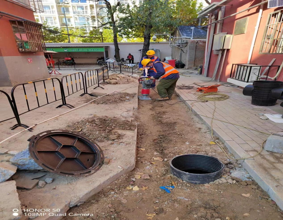 项目实施过程中,街道、社区、施工方等多方各司其职、协同发力,确保施工进程万无一失。街道负责全盘把控,控制各个时间段内工程进展及质量;社区与物业负责协调解决在施工过程中居民产生的矛盾和问题;施工单位确保工程进展情况及实施;监理单位把控好整体工程质量;管理单位负责施工过程中各方的问题协调解决及相关问题的及时反馈等;勘察单位勘实地下管网分布走向,避免施工中导致周围管道破损,造成不必要的损失、纠纷......