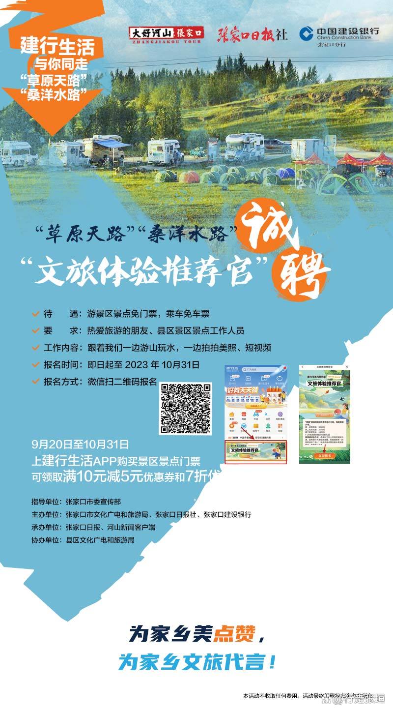 建行生活与你同走“草原天路”“桑洋水路”文旅体验推荐官招募启动啦!