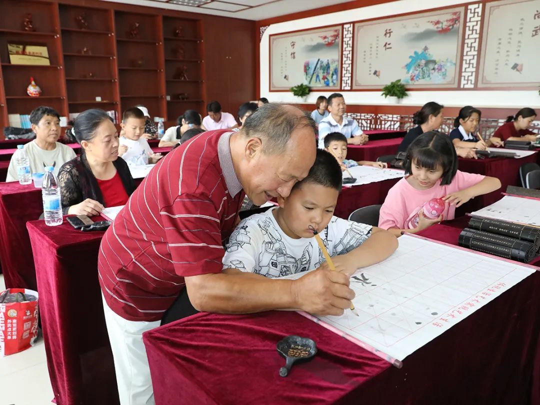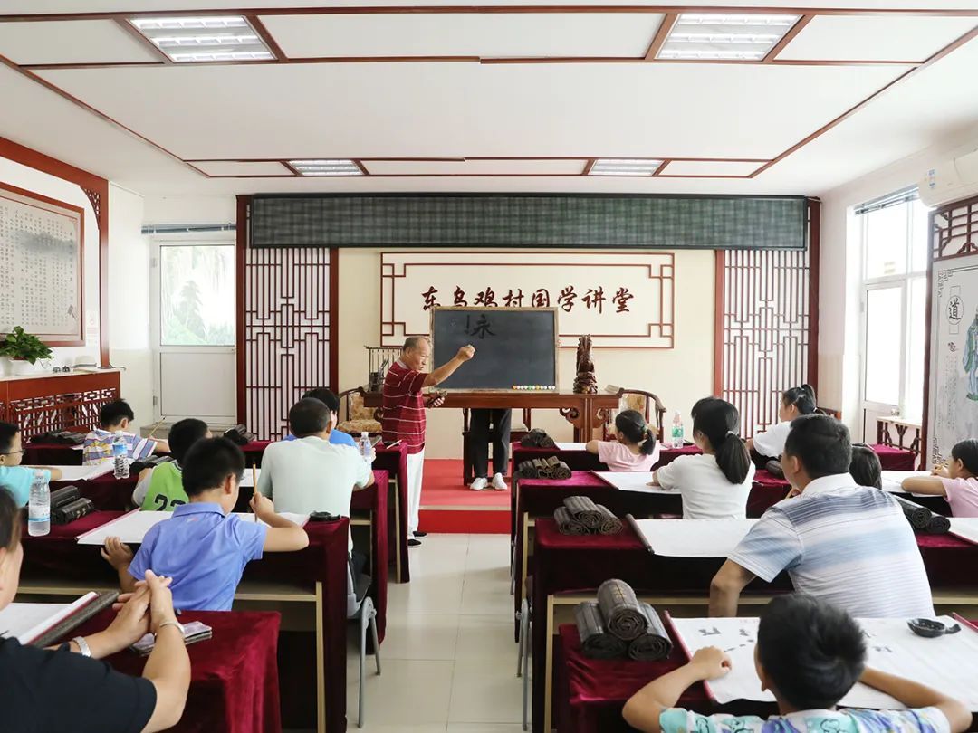 “收笔要慢。”记者在东乌鸡村国学讲堂看到,王广德正悉心指导小朋友练习书法。每周六,来自本村和附近村庄的20多名小朋友都会跟着王广德学习书法,他们中最小的3岁,最大的12岁。针对年龄较小的孩子,王广德从认识书法、握笔姿势等基础内容教起。对于年龄稍大、基础较好的孩子,王广德教他们写隶书和行书,指导他们感受书法的运笔节奏与形态之美,并从中感悟做人的道理。