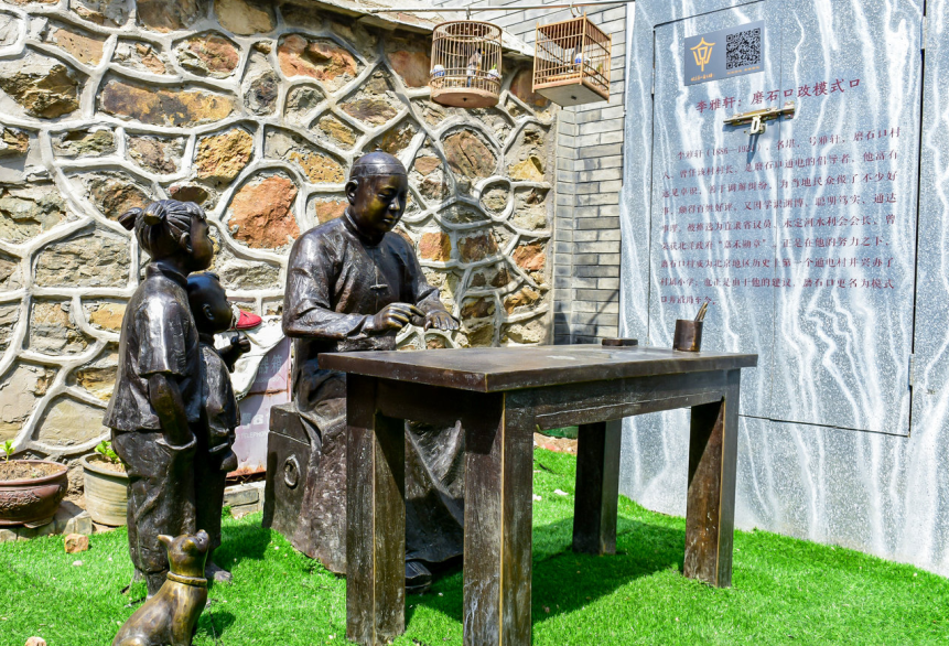 △ 华商初创三杰商议模式口村通电事宜雕塑