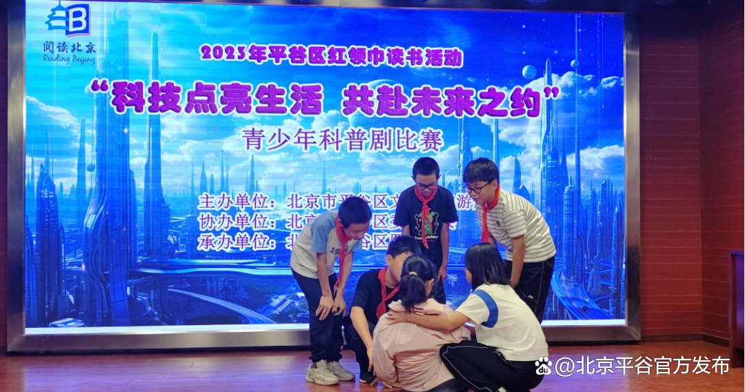 平谷区红领巾读书品牌活动,是区文化和旅游局依托区图书馆面向全区中小学生开展的青少年品牌阅读推广活动。其中青少年科普剧比赛是红领巾读书品牌活动的一项重要内容,科普剧比赛通过开展自主阅读和作品创作,以实际行动引领未成年人践行社会主义核心价值观,塑造美好心灵,增强文化自信,培养德智体美劳全面发展的社会主义建设者和接班人。