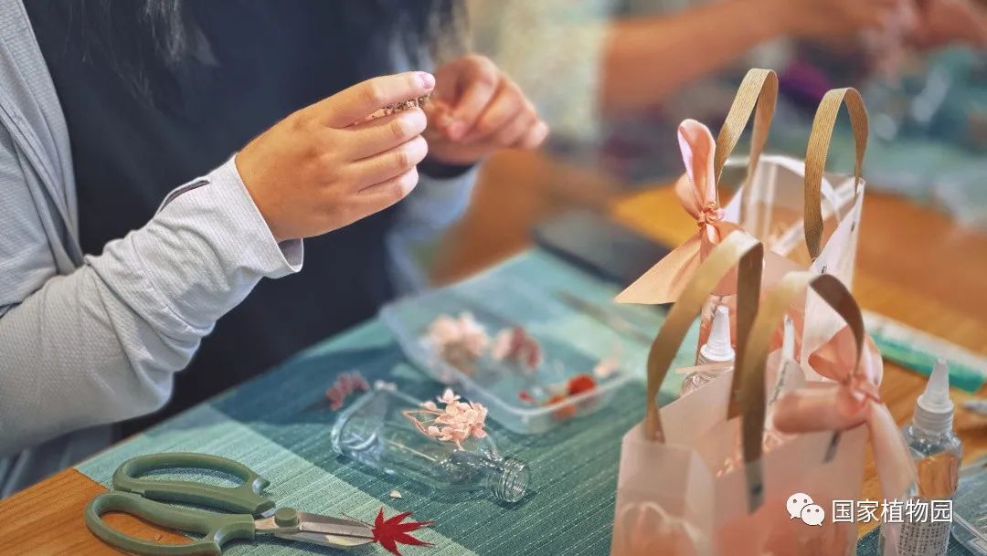 9月23日,植物园园艺驿站在国家植物园(北园)节气昇活馆开展“浮游花DIY·将秋色收入瓶中”活动。