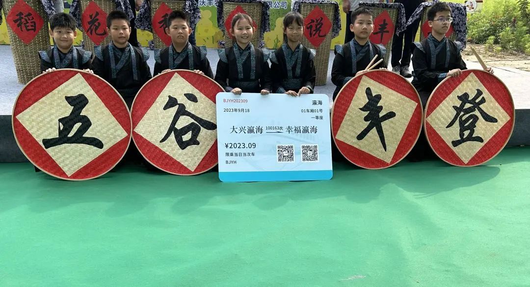 嘉宾们把象征丰收的水稻、高粱、玉米依次倒入粮仓,象征着“颗粒归仓”的丰收喜悦,也标志着该镇以“稻花香里说丰年”为主题的丰收节农文旅活动正式拉开帷幕。