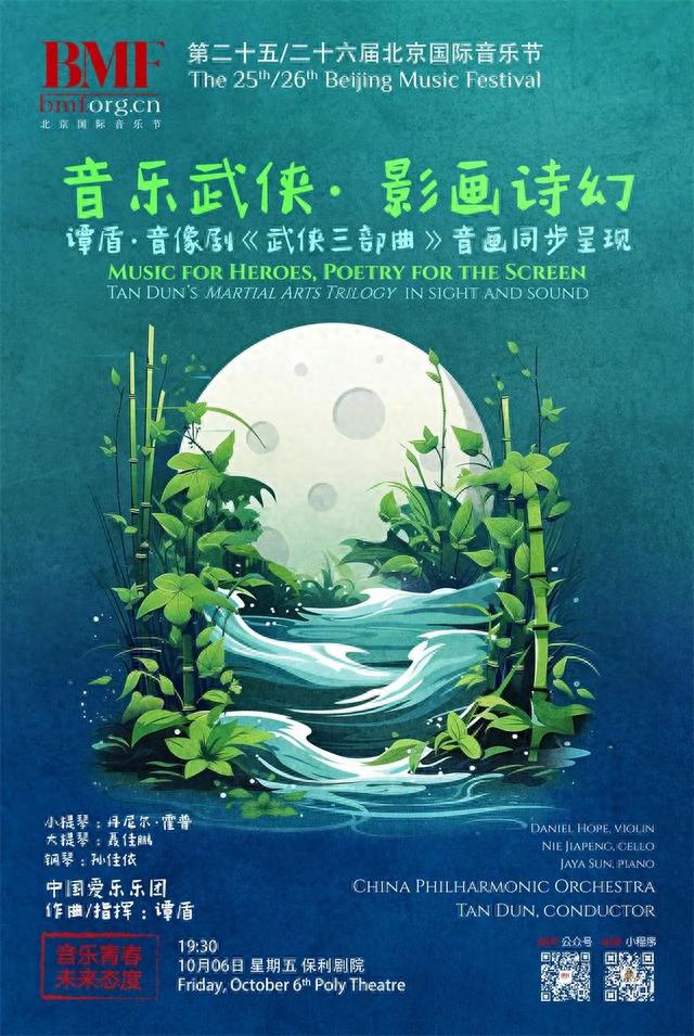 10月6日晚,著名作曲家、指挥家谭盾、小提琴大师丹尼尔·霍普、青年钢琴家孙佳依和大提琴家聂佳鹏共同带来谭盾《武侠三部曲》交响音乐会,勾勒出经典影片《卧虎藏龙》《夜宴》和《英雄》中荡气回肠的武侠哲学,引申出关于中国人文精神和传统哲理的丰富思考。